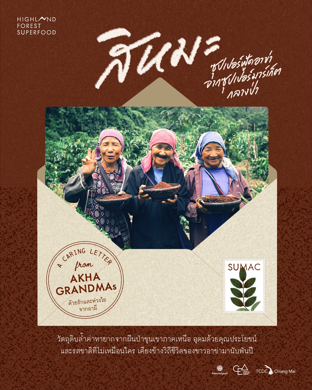 Highland Forest Superfood โดย สำนักงานส่งเสริมเศรษฐกิจสร้างสรรค์ (องค์การมหาชน) เชียงใหม่ ศูนย์สร้างสรรค์งานออกแบบเชียงใหม่ (TCDC เชียงใหม่) ร่วมกับ Footage Found, Seeds Journey หมู่บ้านสันป่าสัก อ.แม่สาย จ.เชียงราย ไร่ใจพอเพียง บ้านดอยงาม จ.เชียงราย และภาควิชาพัฒนาผลิตภัณฑ์ คณะอุตสาหกรรมเกษตร มหาวิทยาลัยเกษตรศาสตร์