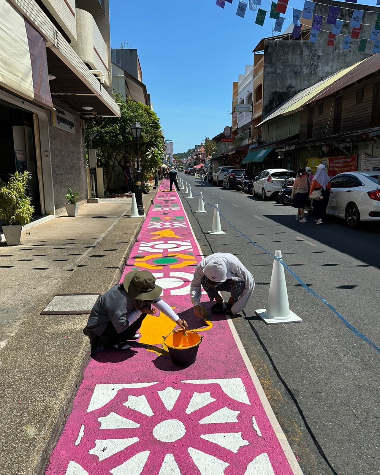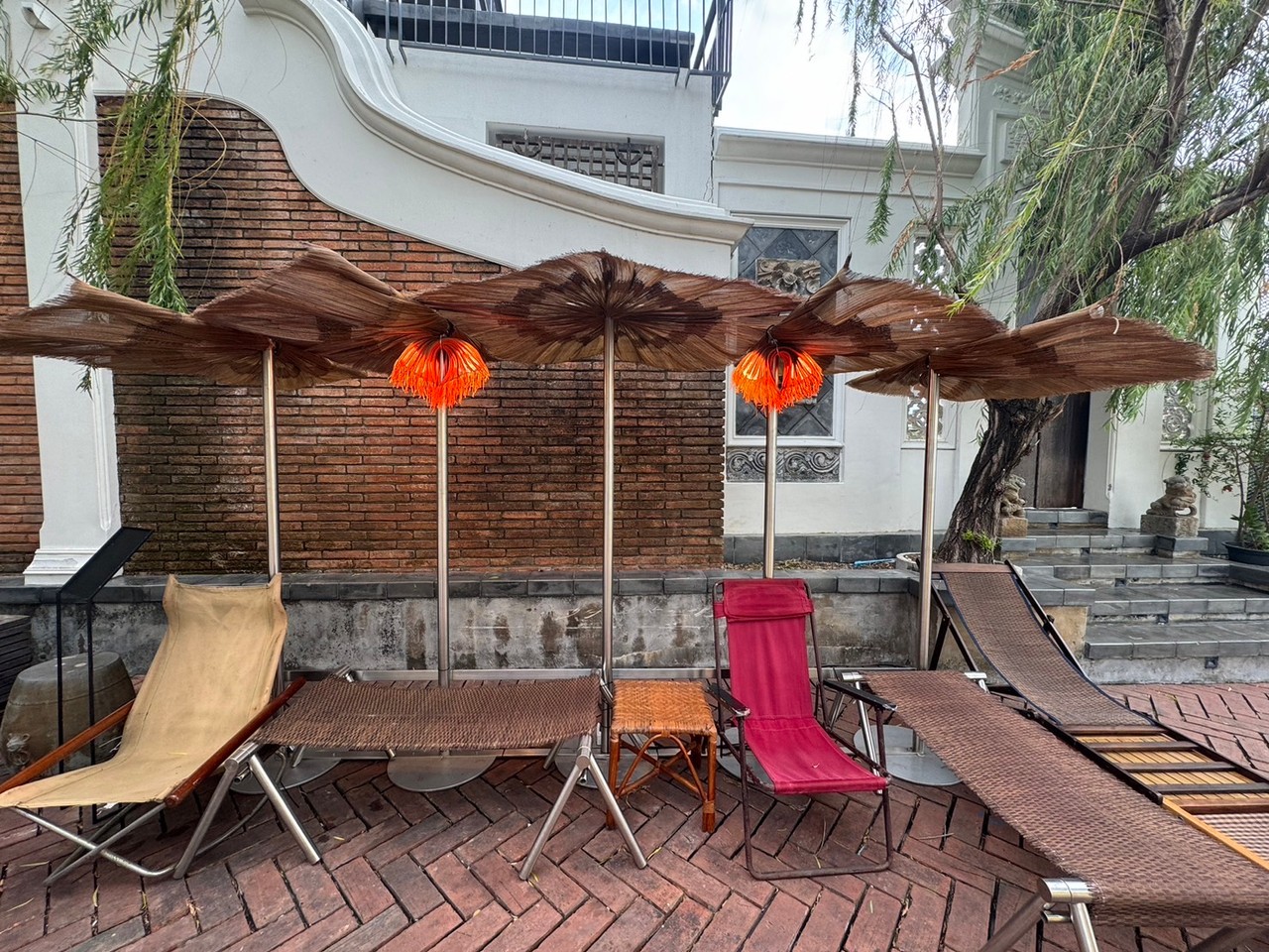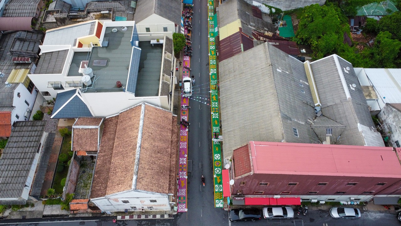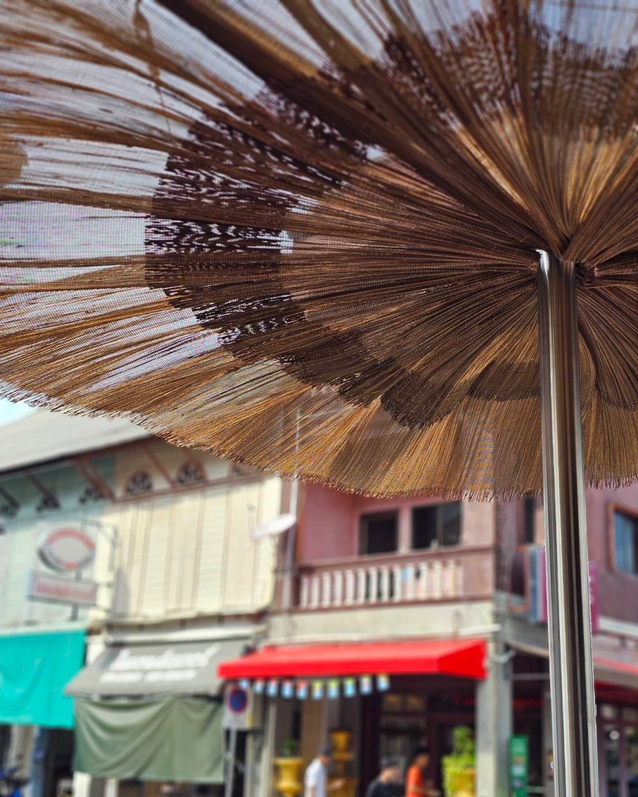 พื้นที่นั่งพักริมทาง (Street Furniture) ที่มาพร้อมเรื่องเล่า ทำจากเก้าอี้ที่ไม่ได้ใช้งานแล้วของบ้านในย่านเมืองเก่า 7 หลัง นำมาซ่อมและจัดวางเชื่อมกันเป็นที่นั่งยาว พร้อมทำร่มบังแดดและโคมไฟจากวัตถุดิบถิ่นอย่างใยตาล ตั้งใจให้เป็นเก้าอี้ต้อนรับแขกที่เจ้าของเป็นคนในพื้นที่จริงๆ และใช้งานได้จริง รวมถึงทำให้เห็นศักยภาพของวัตถุดิบท้องถิ่นในการต่อยอดผ่านความคิดสร้างสรรค์ได้ไม่รู้จบ