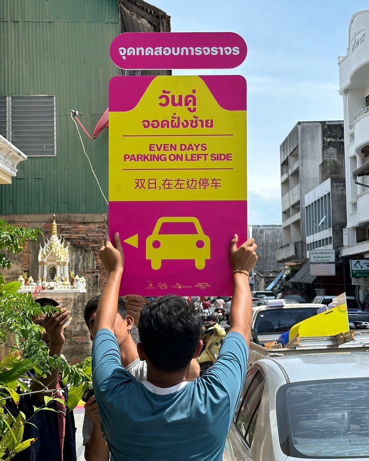 แก้ปัญหาการเดินบนถนนนางงาม ที่ไม่ปลอดภัยแก่การเดินเท้า เพราะมีรถจอดขวางทางเต็มเลน จึงทาสีบนพื้นถนนให้เป็น walkway ที่มีสีสันสดใส พร้อมลวดลายผู้หญิงสามวัย เด็ก ผู้ใหญ่ ผู้สูงอายุ และลวดลายช่องลมเอกลักษณ์ของอาคารในย่าน นอกจากนี้ยังออกแบบป้ายจราจรจอดวันคู่ วันคึ่ติดตั้งบนโครงเสาเดิม ใช้สีสะดุดตา เพื่อเพิ่มการมองเห็น และทดลองบทบาทของงานออกแบบกราฟฟิค สี ฟอนต์ ภาษา ที่มีผลต่อพฤติกรรม