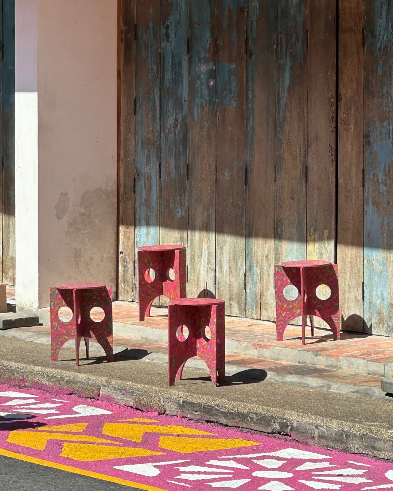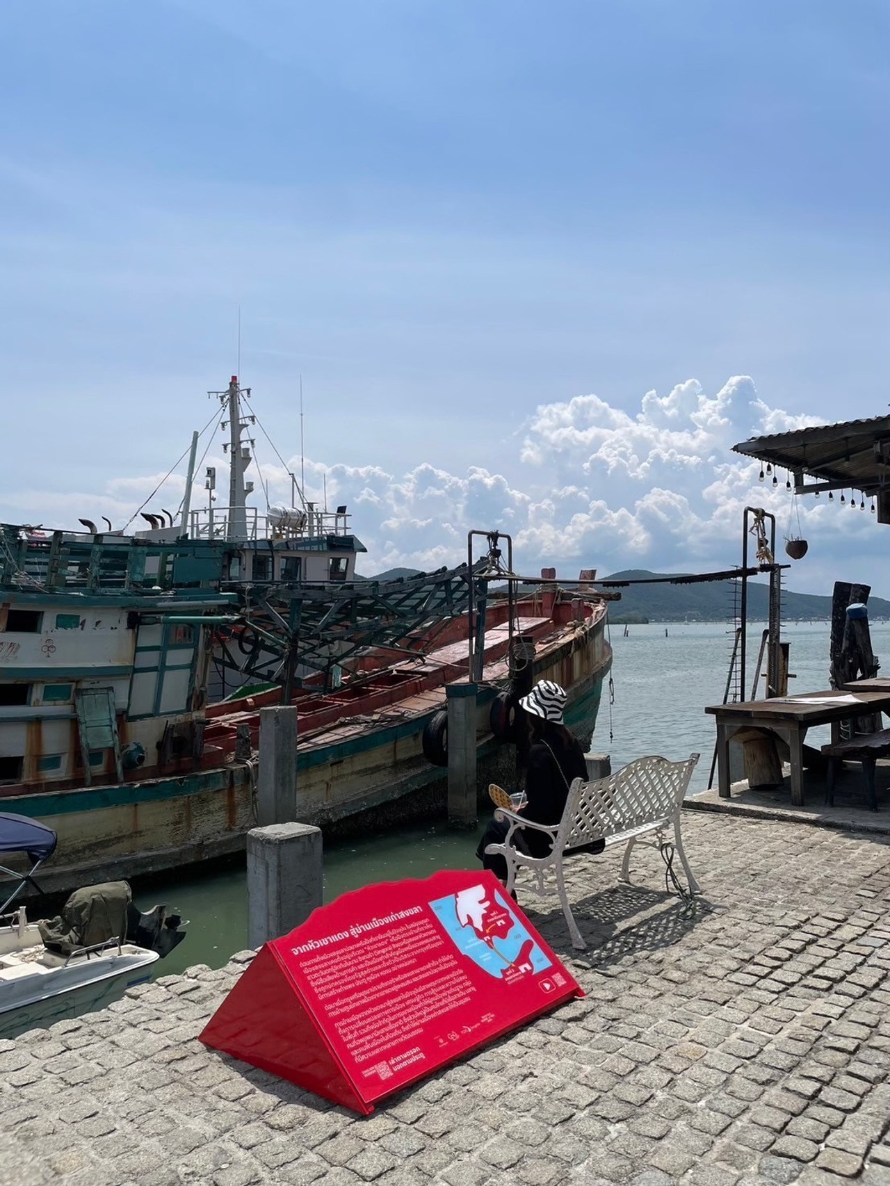ศิลปะจัดวางและเก้าอี้ ในพื้นที่ต่างๆ ในย่าน ที่ได้รับแรงบันดาลใจมาจากความโดดเด่นของอาคารยุคโมเดิร์นในสงขลา โดยใช้พลาสติกจากขยะตามร้านค้าและทะเลมาขึ้นรูปเป็นวัสดุใหม่ ทำให้เห็นถีงสมดุลของการอยู่ร่วมกันของการพัฒนาเมืองและการรักษาสิ่งแวดล้อม
